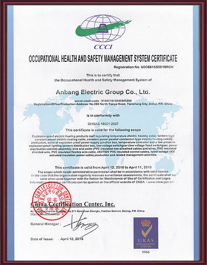 安邦電氣股份有限公司,總部位于北京市長安街,成立于2004年,注冊資金10088萬。安徽生產基地占地面積63000平方米,擁有66套各類生產線,其中進口生產線6套。國家高新技術型企業,滁州市市長質量獎企業,專精特新“小巨人”企業,擁有國家知識產權局授權的45項專利,其中發明專利28項 , 主筆《太陽能熱利用自限溫電熱帶安裝規范》行業標準,參編《自限溫電伴熱帶》國家標準、《工業和商業用電阻式伴熱系統》國家標準、《太陽能熱利用自限溫電熱帶》行業標準、《爆炸性環境 電阻式伴熱器》國家標準等7項國家標準。企業通過UL認證,國家強制性 CCC產品認證,ISO9001質量管理體系認證,ISO14001環境管理體系認證,ISO45001職業健康安全管理體系認證,Q/SHS0001.1健康、安全與環境管理體系認證,歐盟防爆ATEX認證,歐盟CE認證,RoHS認證,俄羅斯海關聯盟認證,國家防爆電氣CCC證書。產品系列:集膚伴熱系統、電伴熱系統、電加熱器、電地暖系統、集儀器儀表、電線電纜、高低壓配電柜(箱)、電纜橋架、閥門管件等等設計、制造、銷售。產品應用于航天航空、軍工、石油、石化、天然氣、機場、化工、鋼鐵、隧道、消防、養殖、融雪化冰、室內供暖、國家電網及眾多電廠等等國家重點工程。出口美國、英國、德國、俄羅斯、韓國、日本、哈薩克斯坦、烏克蘭、伊朗等眾多國家。